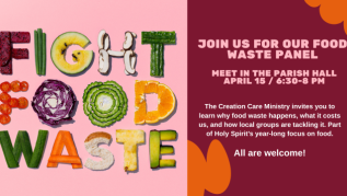 Food Waste and How to Avoid ItWednesday, April 15 • 6:30–8:00 p.m. • Parish Hall As part of Holy Spirit's ongoing focus on food this year, the Creation Care...