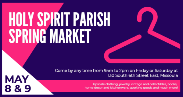 Lent – the 40-day period we are now experiencing and one that can add a great deal to Holy Spirit's Spring Market, May 8-9. Find a sturdy box. Begin filling it with 40 items for the market! Lent is the perfect time to sort out your no-longer-neededs, the very items that will lead to a successful Market. No rummage please. We need your best (clean, unbroken, and usable) Vintage and Boutique Clothing, Accessories, Jewelry, Home Décor, Cookware, Dishes, Flatware, and Other Kitchen Utensils, Linens, Books, Sport and Camping Equipment, Luggage, Pet Accessories, and Small Furniture. Feel the energy that builds as you sort through your closets, drawers, and storage areas. More information in the weeks ahead – but, right now - find that empty box and begin this special Lenten practice. You and Holy Spirit will be richer for each item you donate. We will not be collecting your items until May 3, so you have plenty of time – and maybe, even, the need for more than just one box!